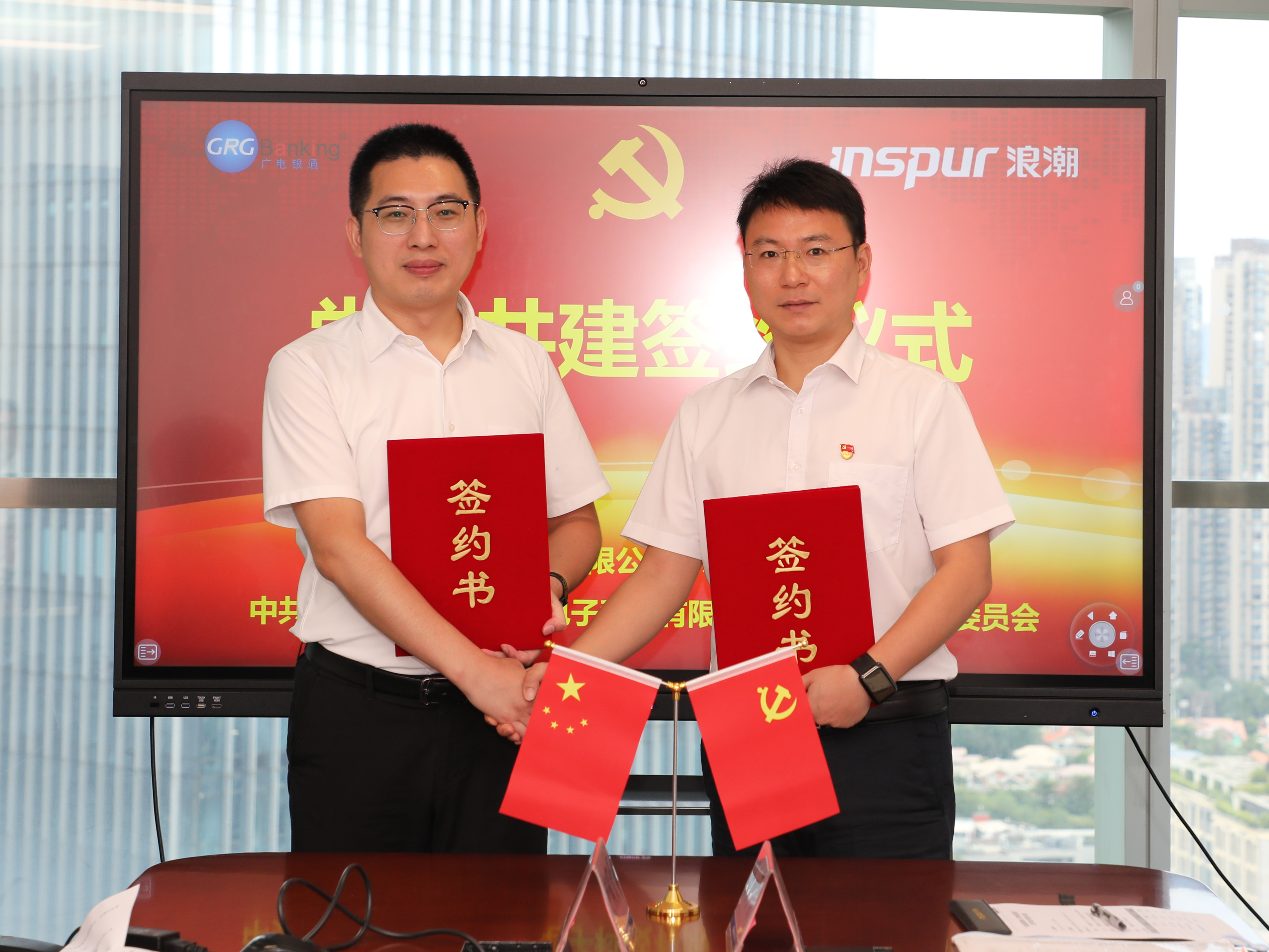 在共建双方的见证下,深圳广电银通管理系统党支部与浪潮集团广东区党支部举行了党建结对共建签约仪式。